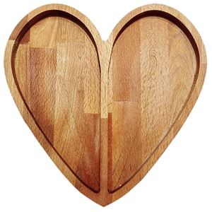 2 gözlü Kalp Desenli Kahvaltılık ve Çerezlik Ağaç Sunum ve Servis Tepsisi