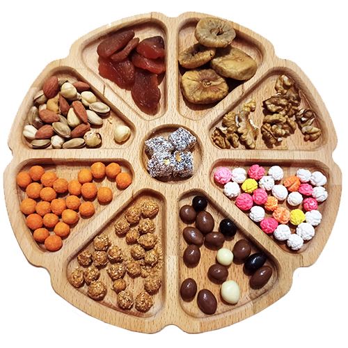8 gözlü Çiçek Kahvaltılık ve Çerezlik Ağaç Sunum ve Servis Tepsisi