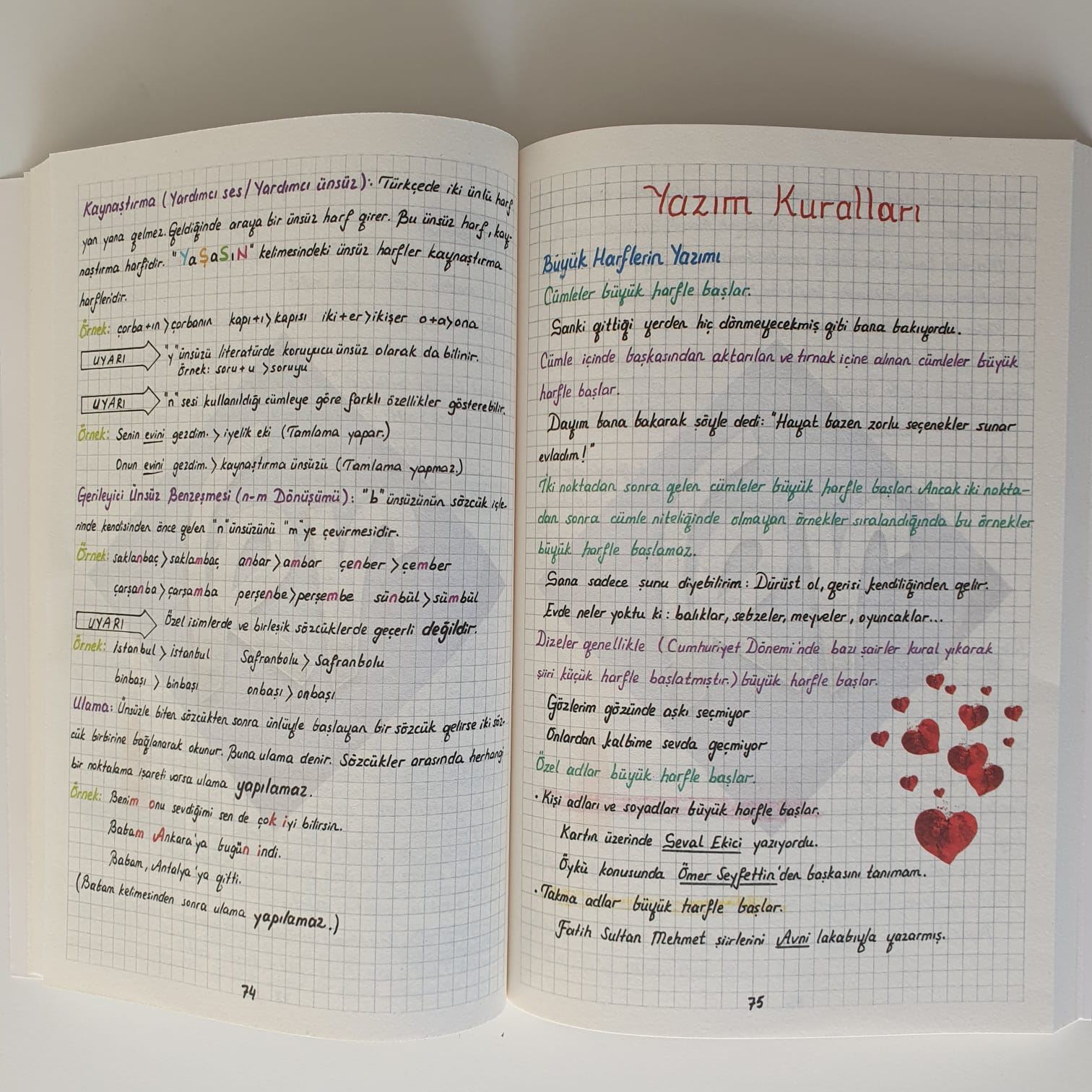 - Renkli kalemlerle yazılmıştır.