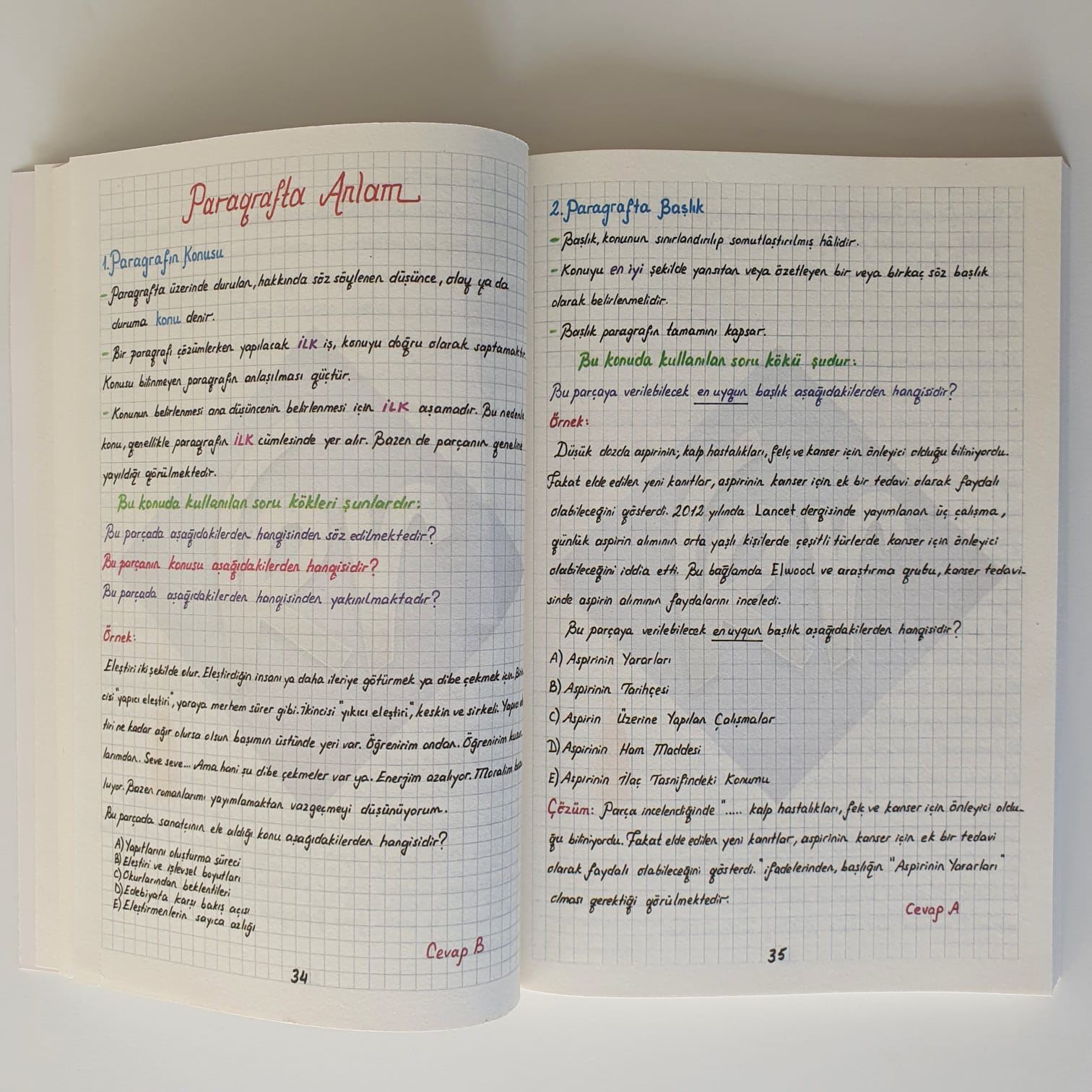 - Renkli kalemlerle yazılmıştır.
