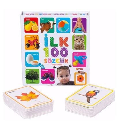 Bu eğlenceli Flash Card çocukların dünyasında yer alan ilk 100 sözcüğü içerir. Bu sözcükler ve resimler çocukların konuşmayı öğrenmeleri için gerekli ilk adımları atmalarına yardımcı olacak eğlenceli bir eğitim setidir.